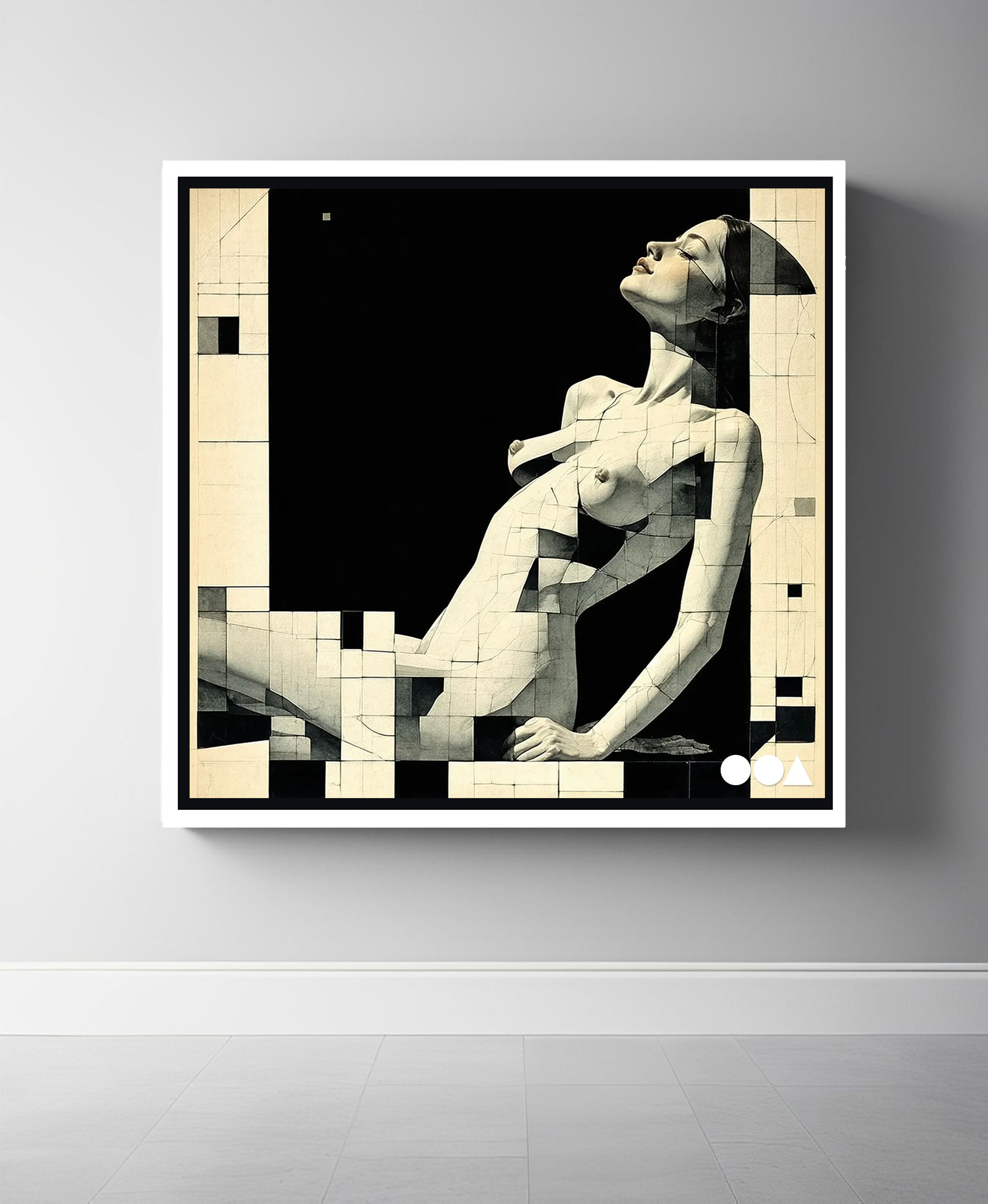 Her silhouette is a harmonious interplay of shadow and light, dissolving into the abstract monochrome expanse. The scene whispers of solitude and serenity, a nocturnal communion where the lunar glow becomes both bath and balm. In this timeless moment, the boundaries of self and cosmos blur, and the act of sunbathing transforms into an ethereal ritual under the moon’s gentle embrace.