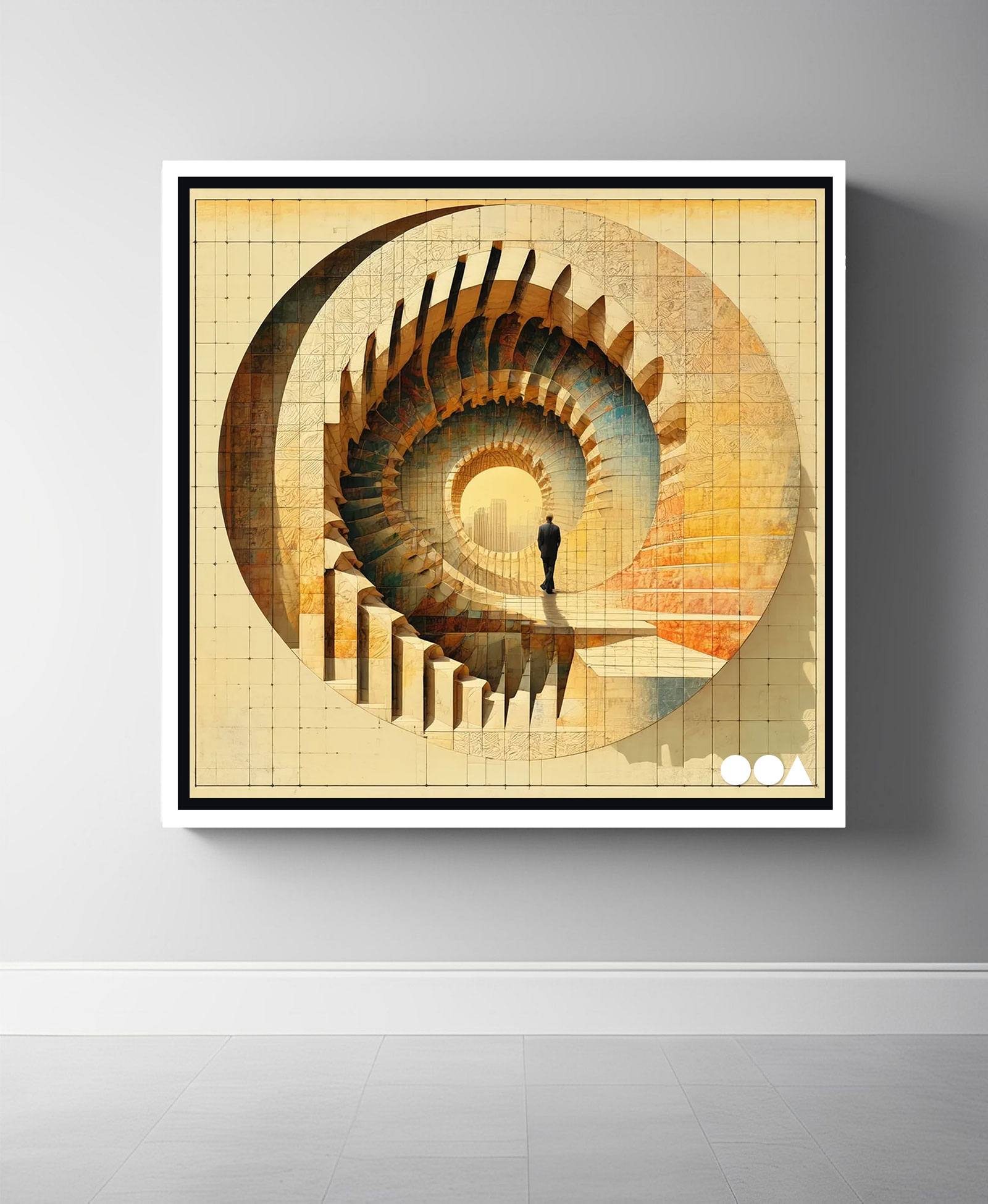 An abstract portal rises, sculpted from stark concrete, standing as both a threshold and an embrace. This surreal gateway leads to the heart of urban life, where the weight of the city’s structure paradoxically offers its dwellers a sense of belonging and solace. A tribute to the comfort found in the rigid lines and towering edifices, this piece captures the unique warmth of the urban sprawl—a home carved in stone.