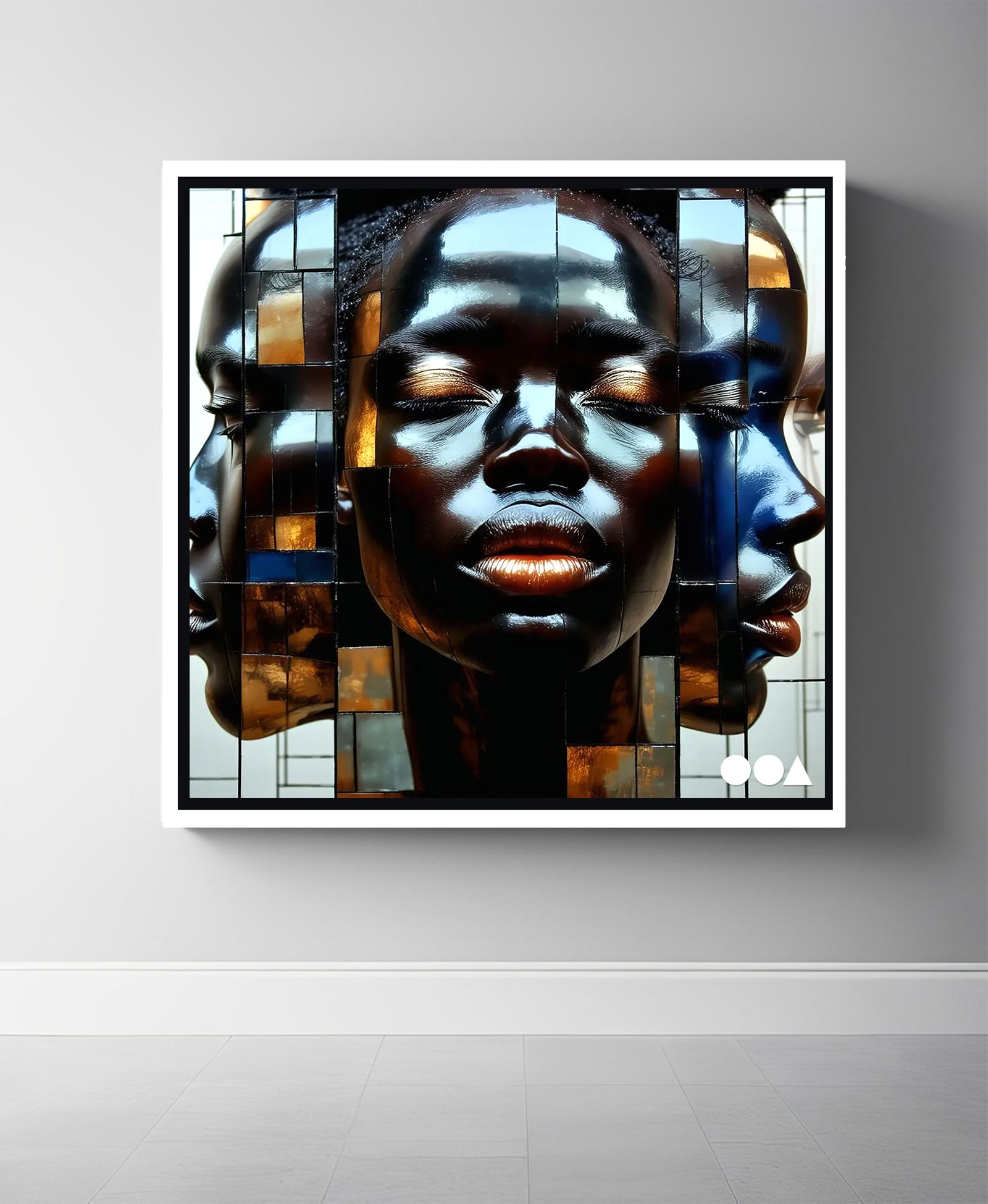 “Rising from the shadows of history, their expressions a testament to resilience and hope. Each visage radiates quiet strength, etched with stories of endurance and triumph. The composition evokes a powerful sense of liberation, celebrating the unyielding spirit of a community that transforms struggle into a beacon of freedom, illuminating the path forward.”