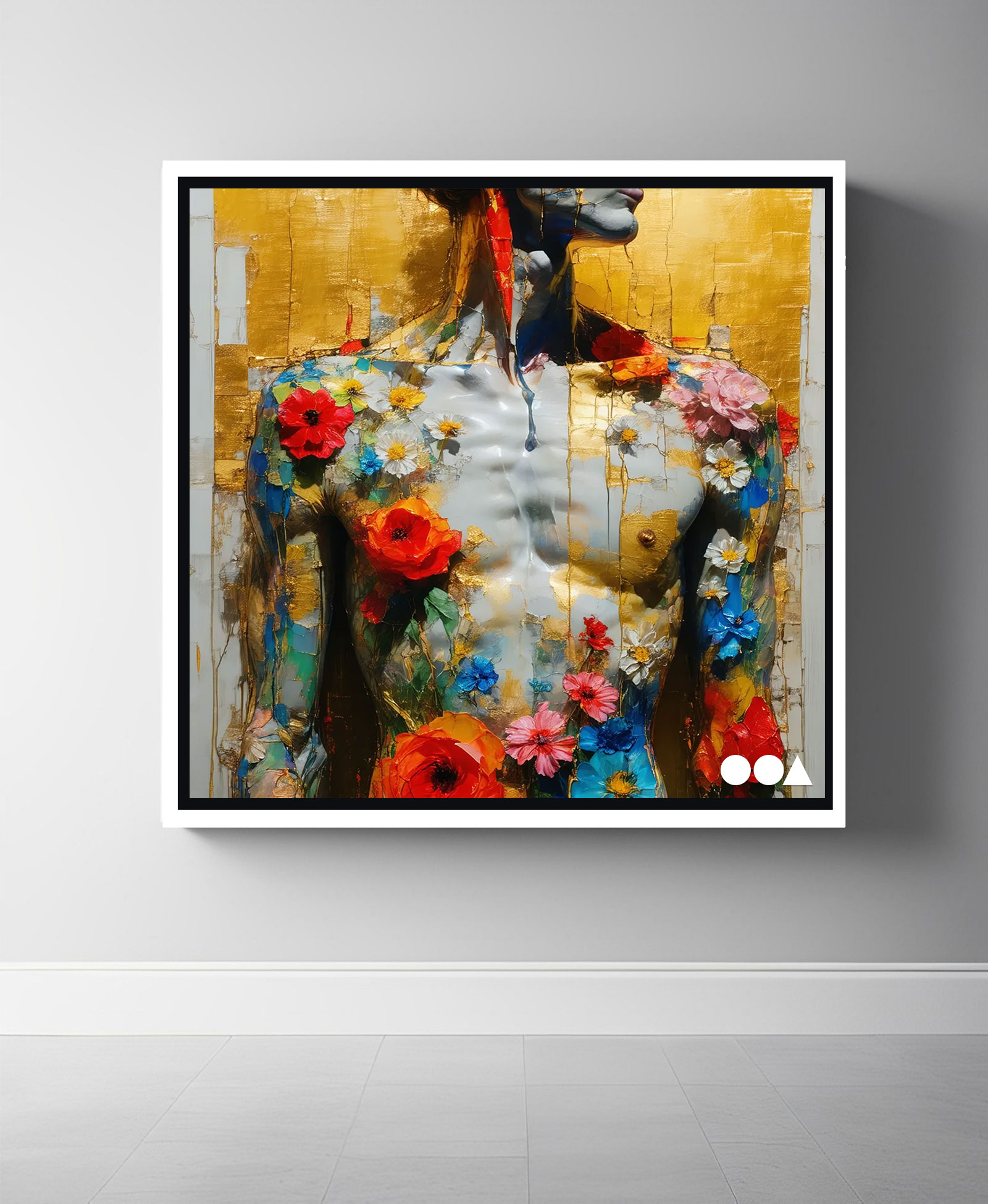 An abstract portrait that merges the human essence with the delicate vitality of flowers. Each petal unfurls like layers of the soul, revealing inner beauty that flourishes amidst the complexities of existence. The vibrant blooms weave through the figure, symbolizing growth, resilience, and the interconnectedness of humanity and nature. This work captures the profound truth that beauty is not merely skin deep but blossoms from within.